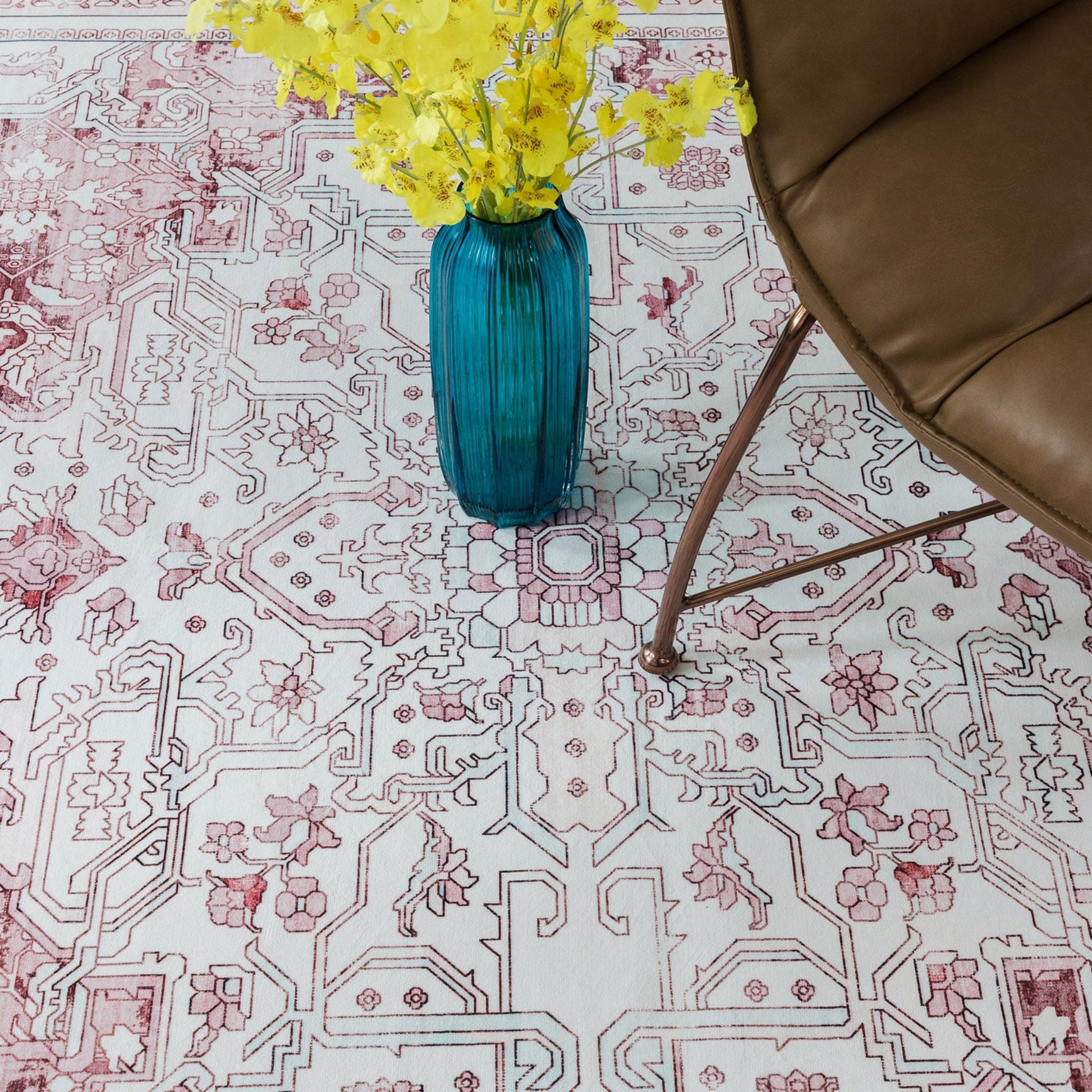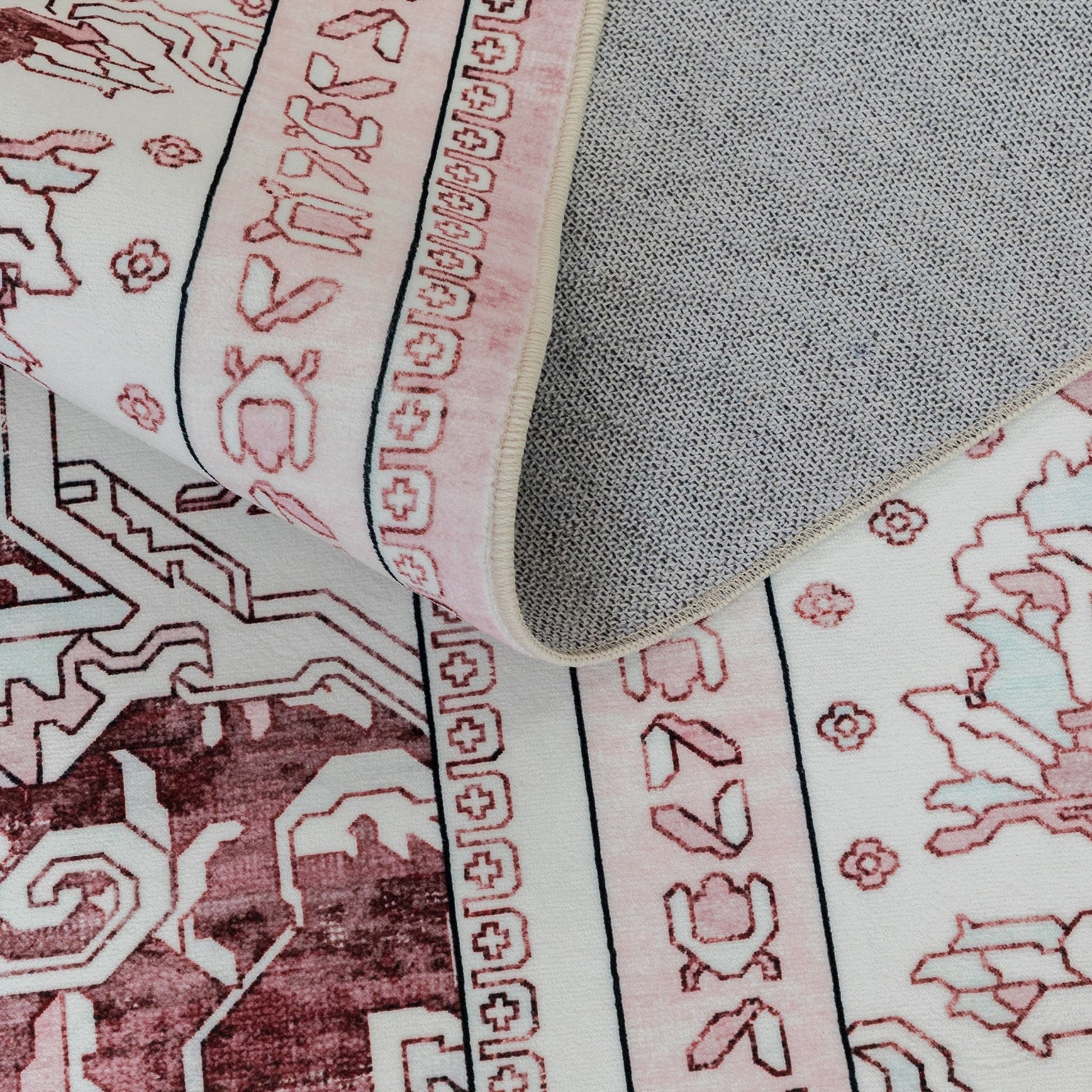 Royal Antique Persian Vintage Design Pink Rug Machine Washable