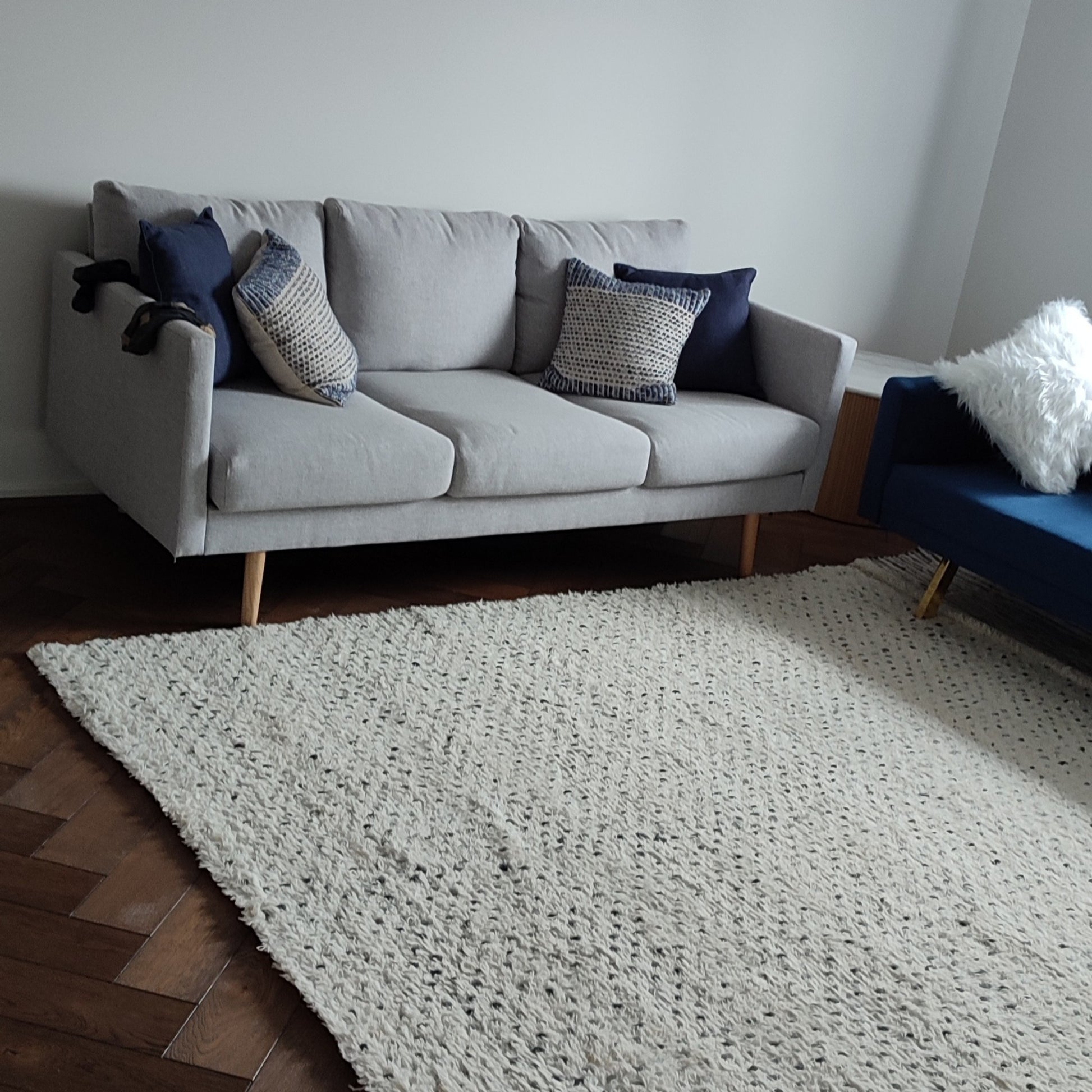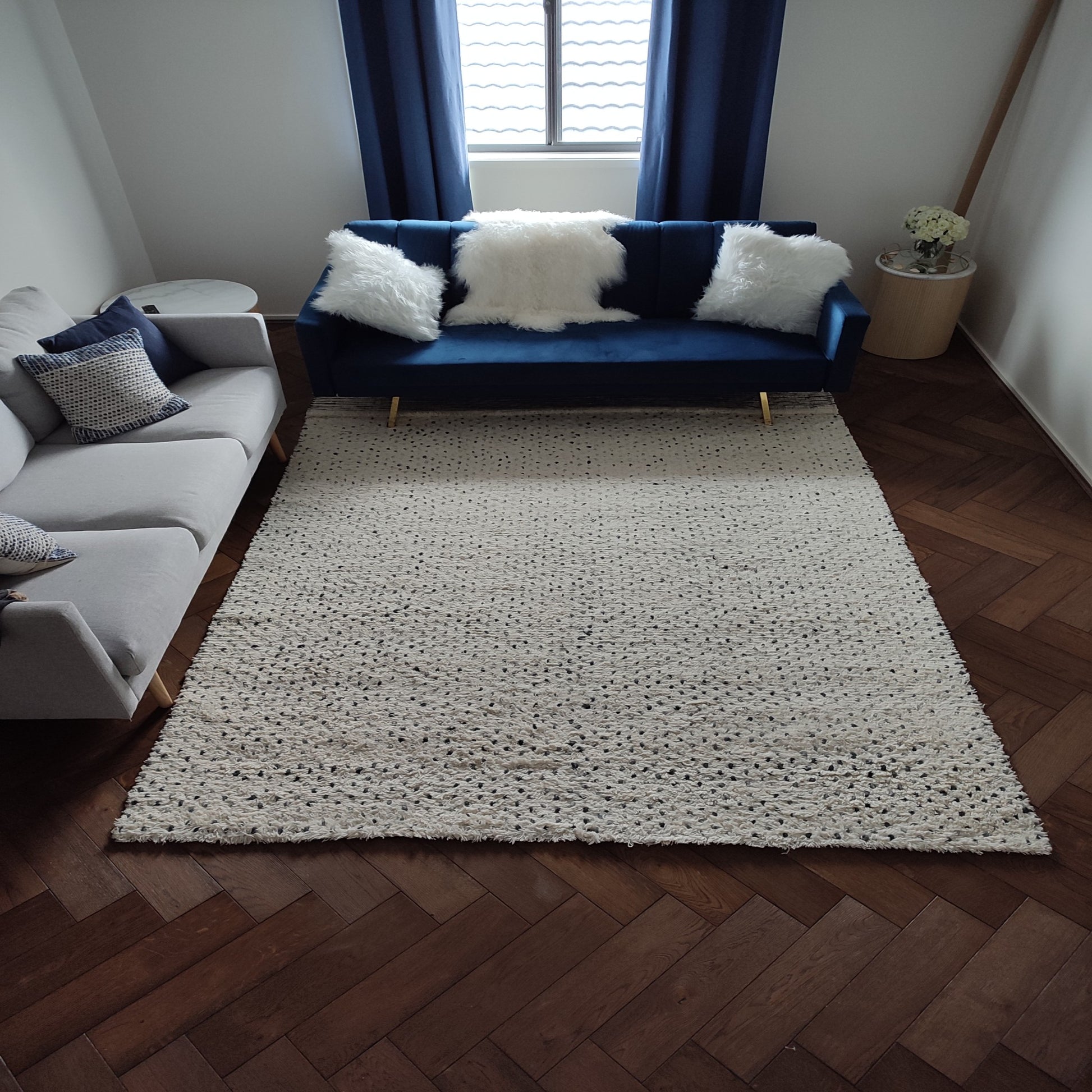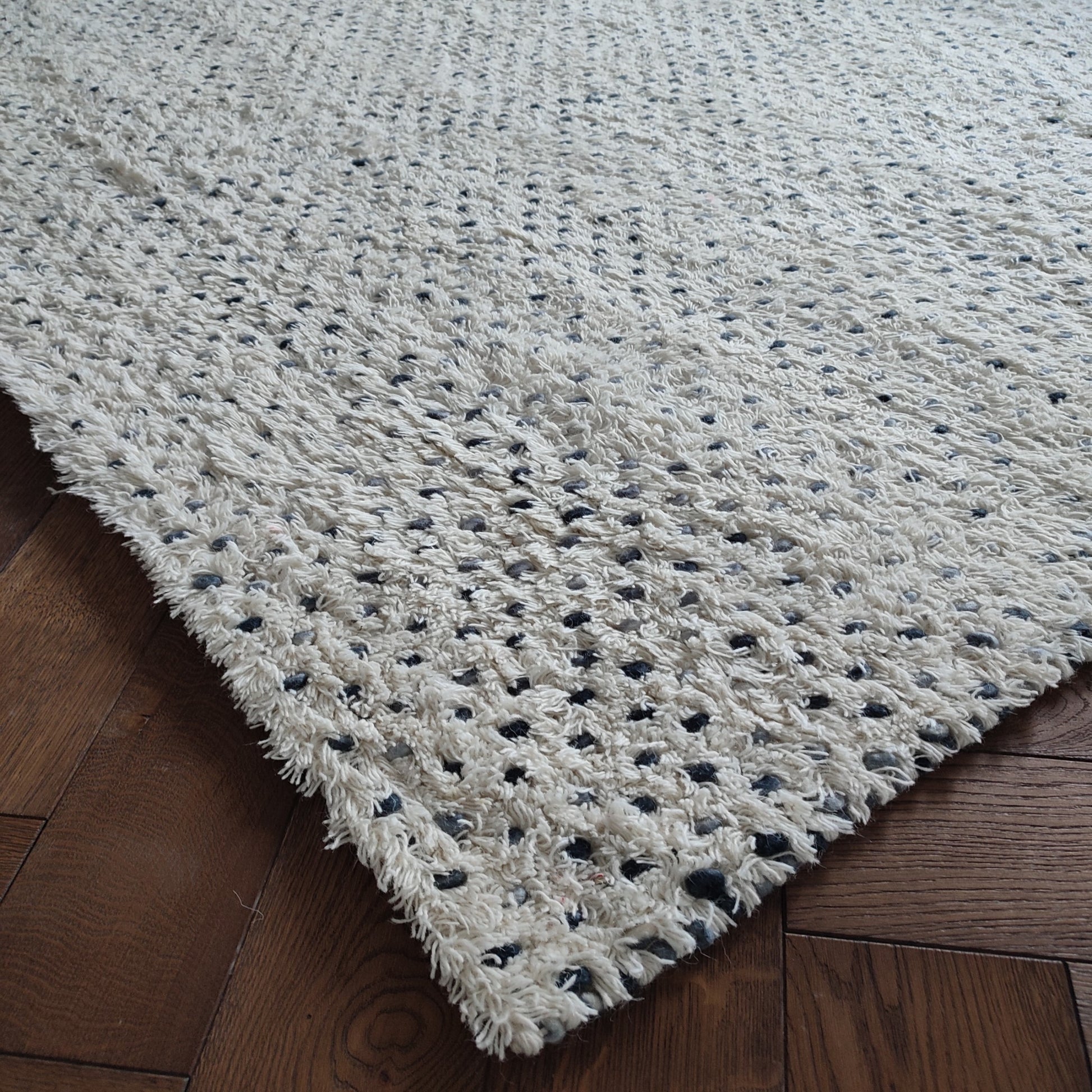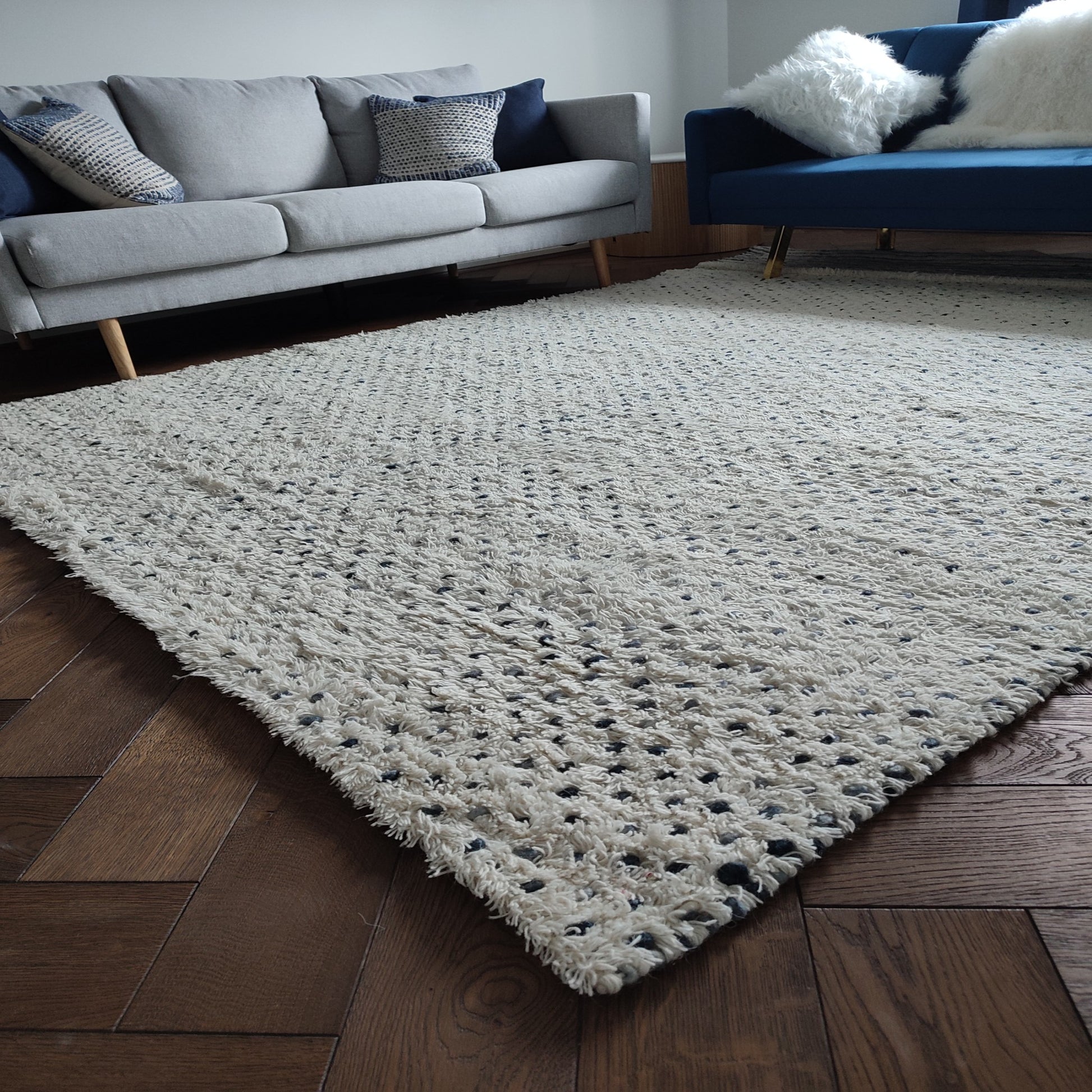 Hand Woven Wool Rug XL 200 x 290cm Ivory with Blue Dots